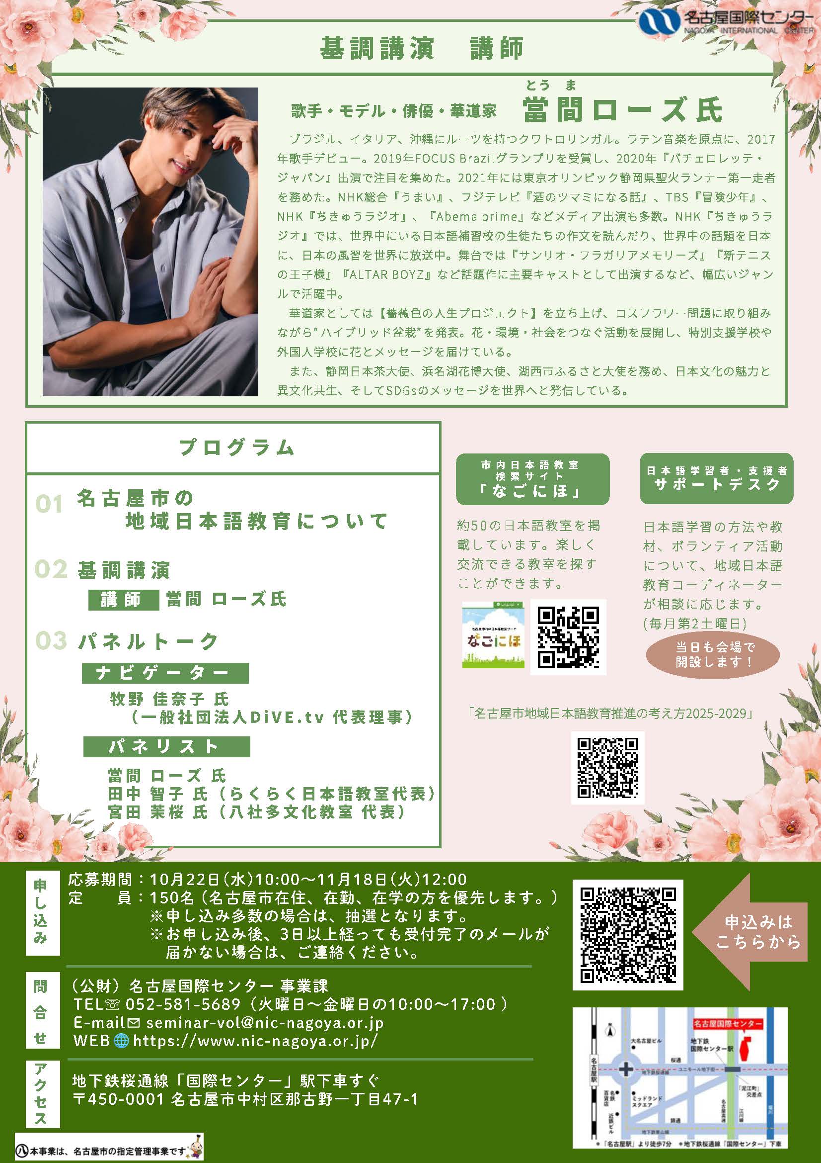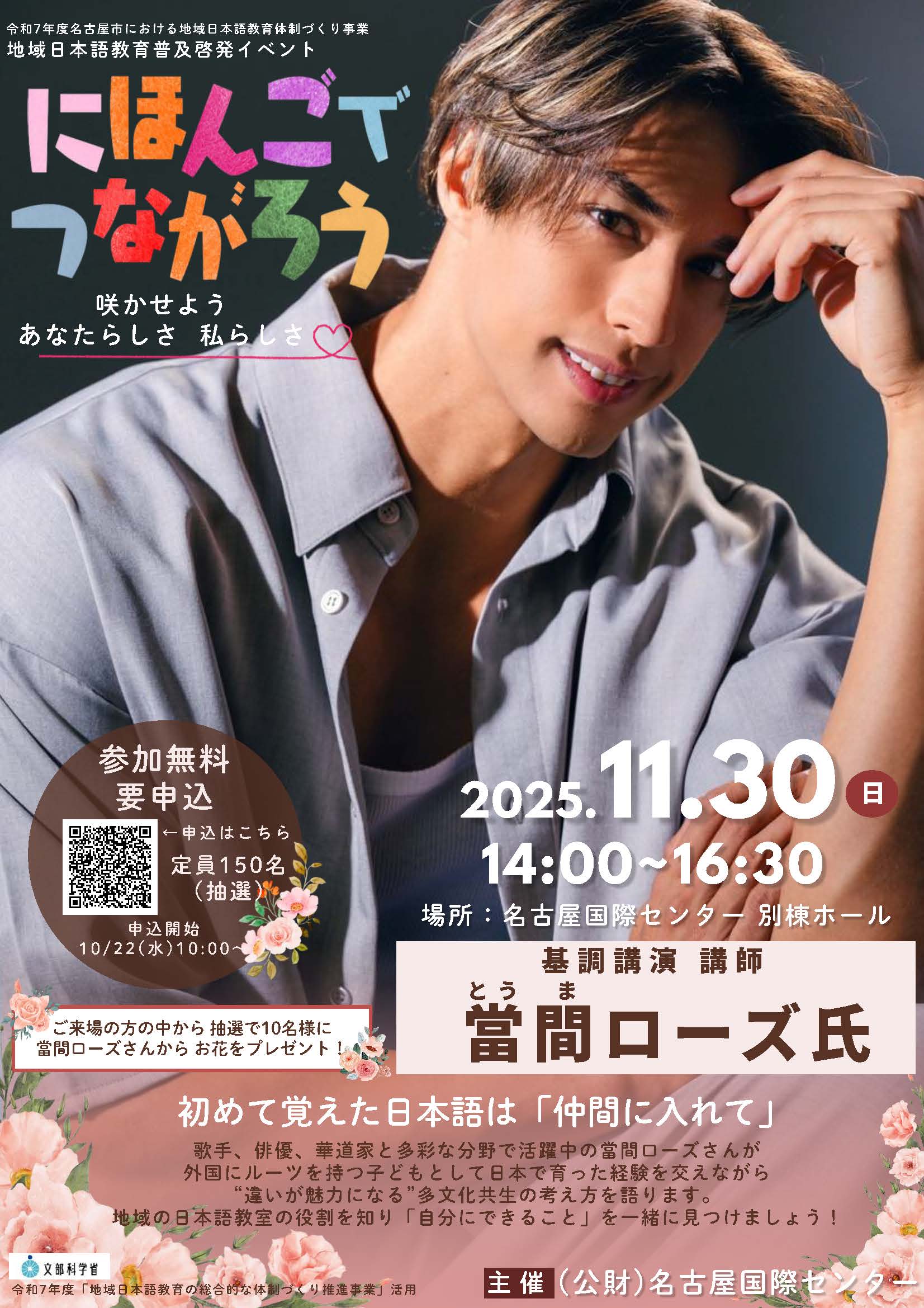 【11/30】當間ローズ基調講演ゲスト出演「にほんごで つながろう」地域日本語教育普及啓発 ~ 咲かせよう あなたらしさ 私らしさ ~